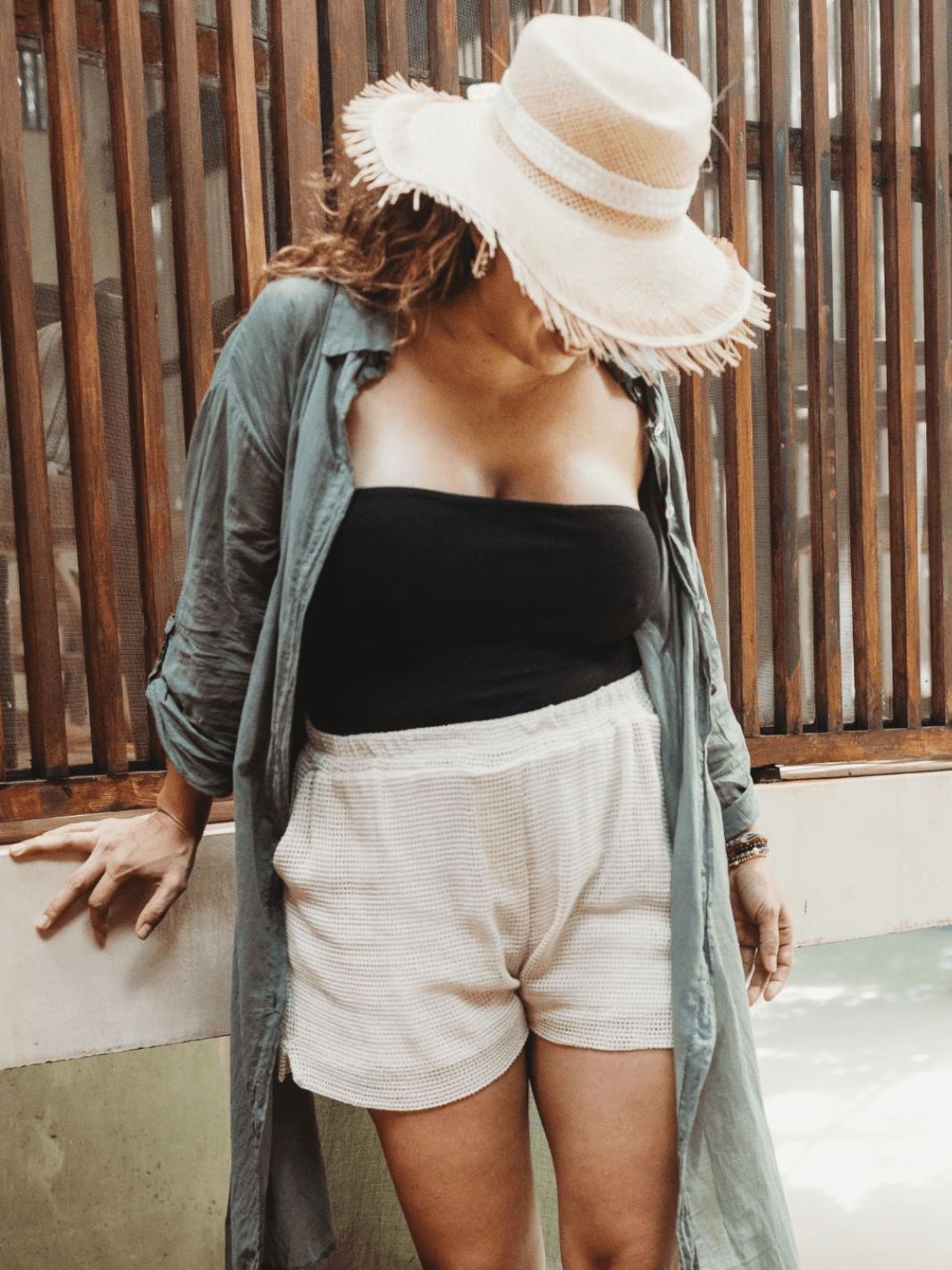 These woven shorts capture that bohemian essence with a fresh, modern twist. Their openwork, sand-toned design provides lightness and style, while the elastic waistband ensures a comfortable fit without losing its striking character. With intricate details that highlight their texture, they're a perfect piece to pair with the Bohemian Woven Gilet, creating an original and casual ensemble.