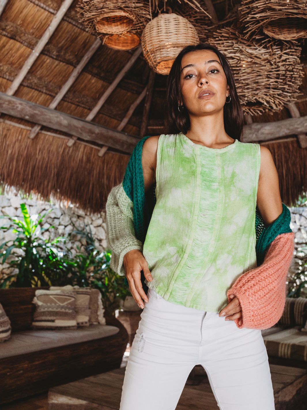 • Yazmin is 1.70 m tall. Size S (4 US) (in green)