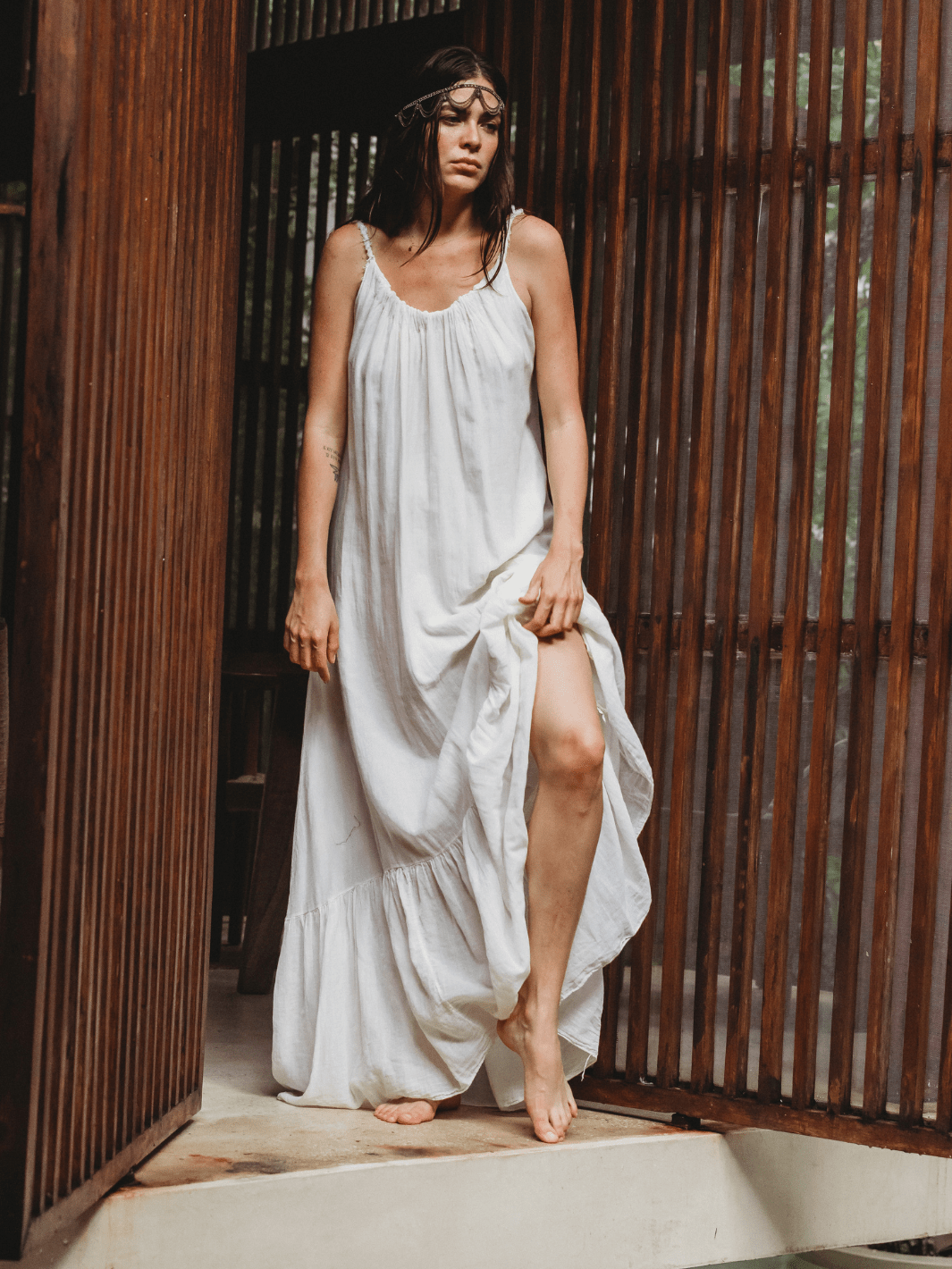 Este vestido de tirantes, confeccionado en 100% algodón, es una combinación perfecta de comodidad y estilo moderno. Sus tirantes estilo cuerda con un elegante lazo en la espalda añaden un toque sofisticado, mientras que el amplio escote trasero realza el diseño y aporta un aire fresco y seductor. Su corte relajado y fluido, con una caída natural, destaca la silueta sin esfuerzo. Disponible en una gama de colores, es un clásico reinventado para brillar con sencillez y versatilidad.