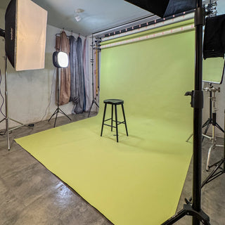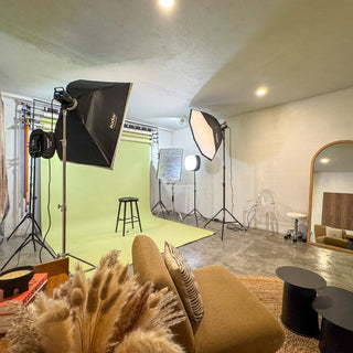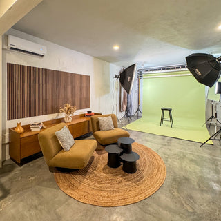 Nuestro estudio en Plaza Valenia está equipado con iluminación profesional, fondos de color, área de maquillaje y mobiliario moderno, ideal para sesiones de moda, retrato o contenido comercial.